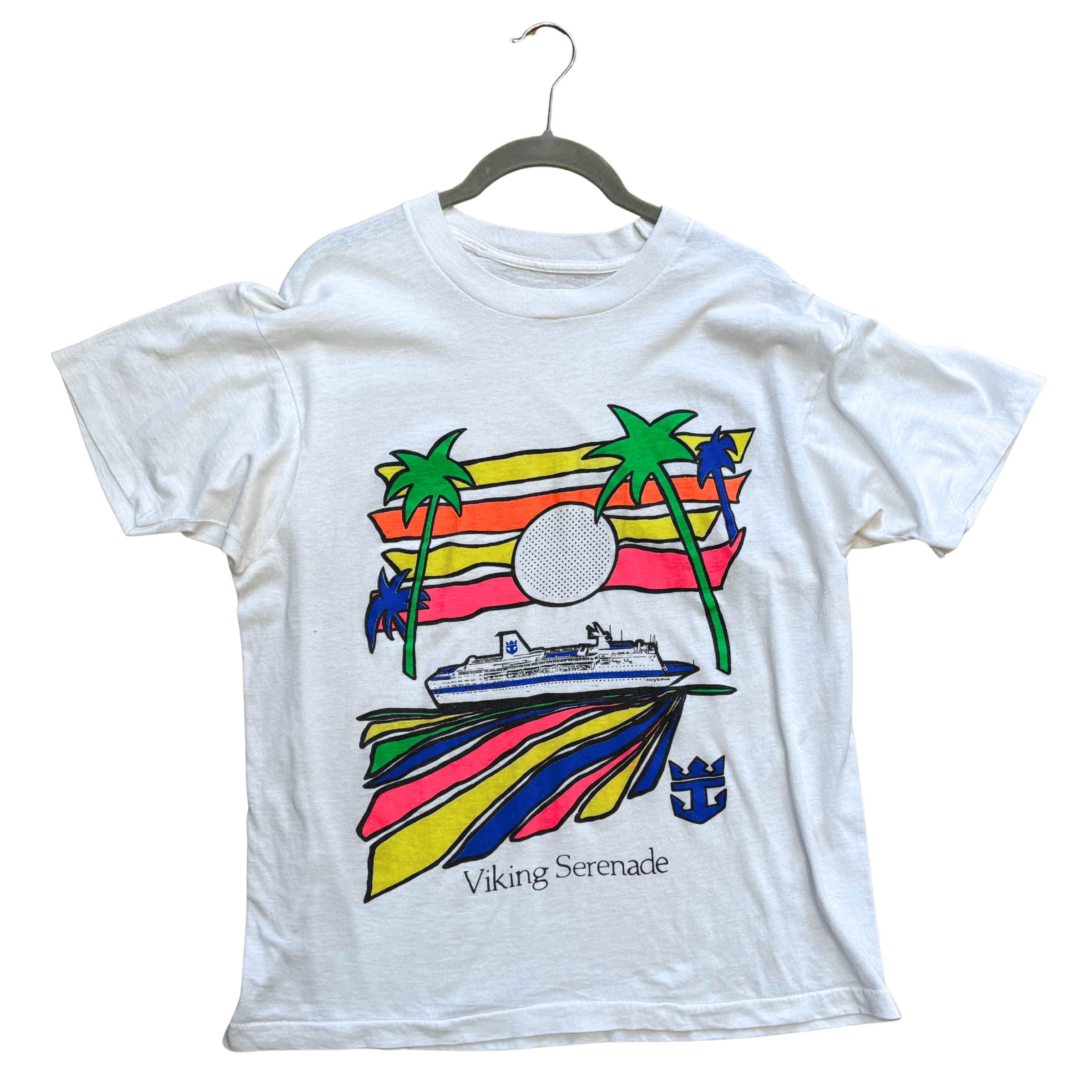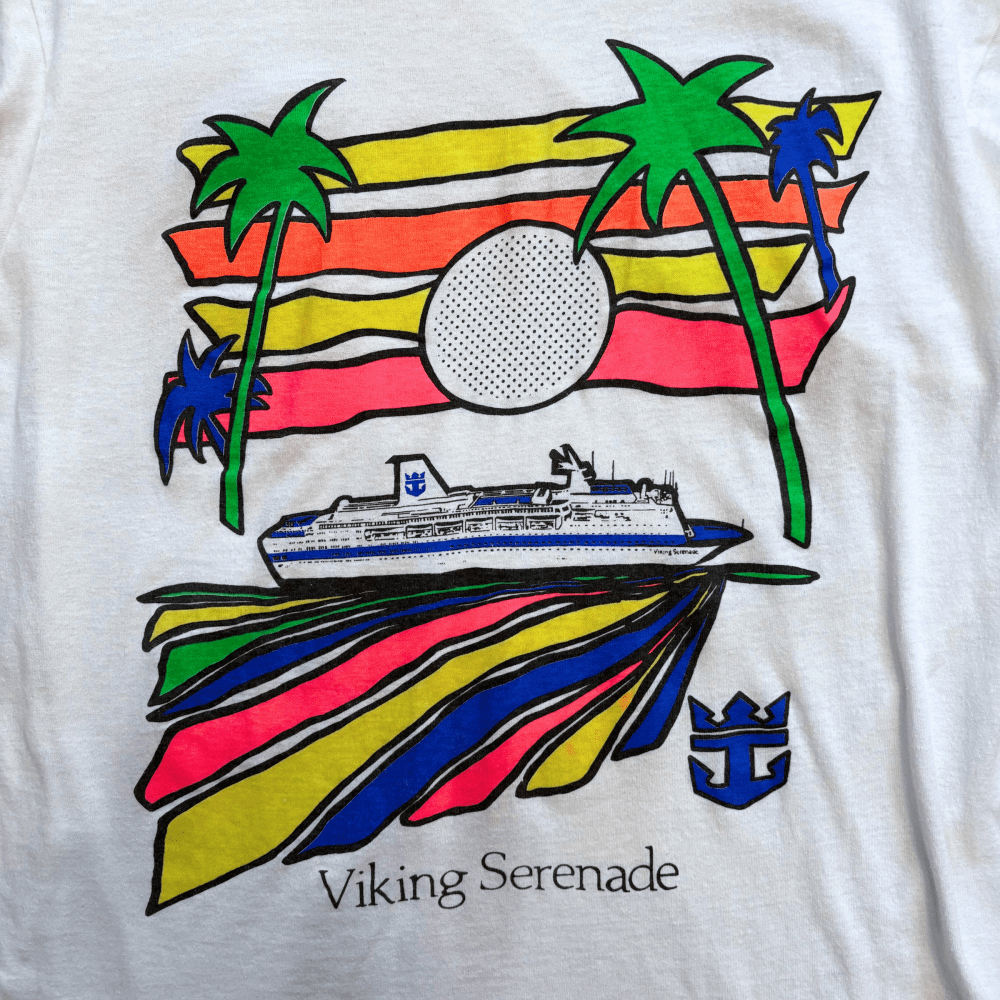 1990s Royal Caribbean Viking Serenade cruise ship t-shirt. A very colorful graphic on white. Approx size small.